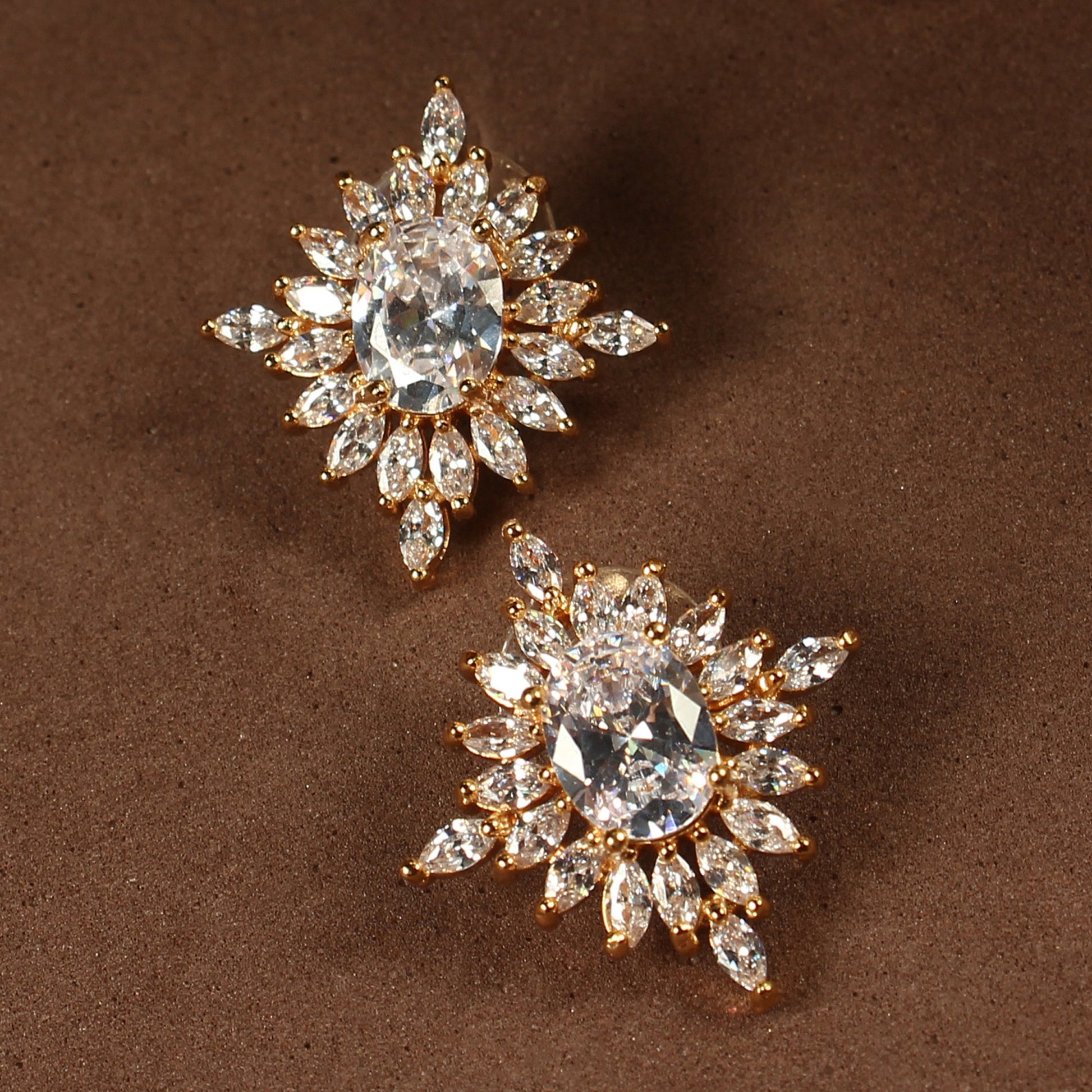 Rich in tone and striking in presence, the Lysoria zirconia stud earrings are designed to bring a festive glow to statement styling. Featuring a bold Cubic Zirconia stone set against a warm golden finish, these studs reflect light beautifully—creating a radiant, jewellery-forward look.