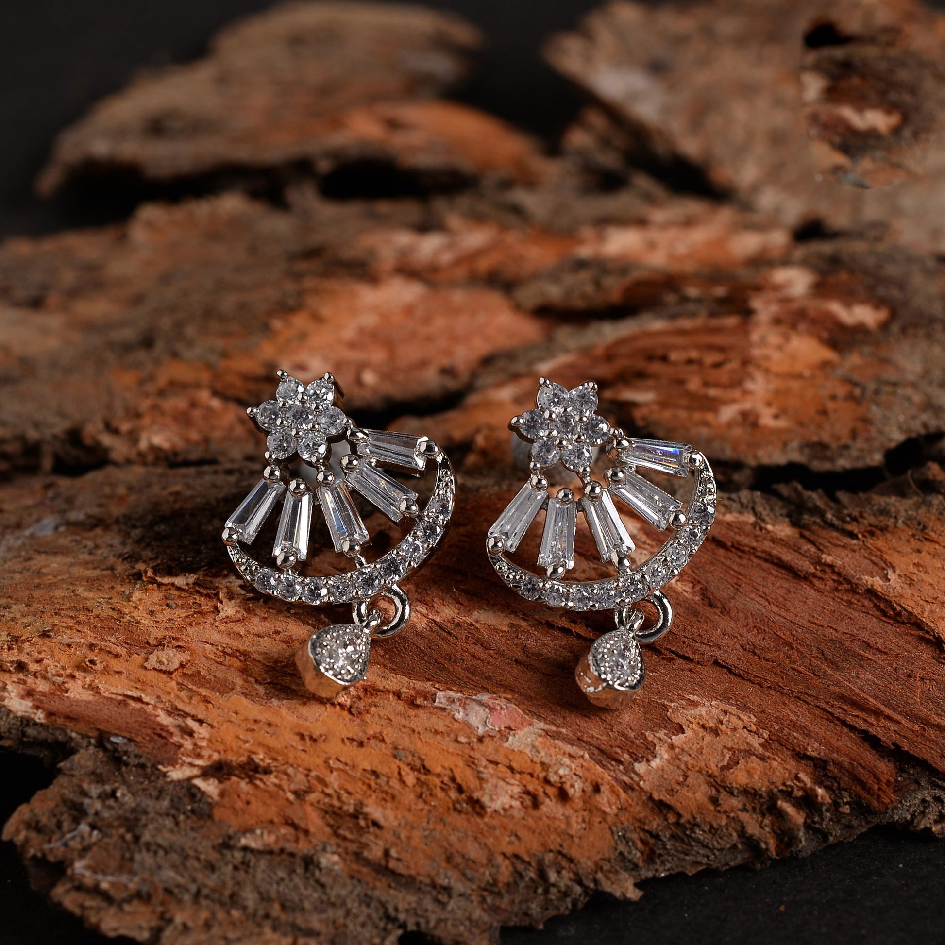 Bold and striking in form, the Asterina zirconia stud earrings are designed to stand tall with confidence. Inspired by star-like brilliance, these statement studs feature finely set Cubic Zirconia stones arranged in an elongated silhouette that draws the eye upward, creating a dramatic yet elegant sparkle.